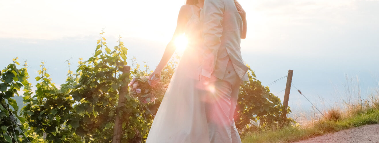 Ende Juli war ich als Hochzeitsfotograf auf dem Zuckerbergschloss bei Kappelrodeck im Schwarzwald um die wunderbare Hochzeit von Janine & Marc zu fotografieren. Wow, was soll ich sagen? Der Tag war perfekt … es war nicht zu heiß, nicht zu kalt, es hat kurz ein bisschen geregnet und danach hatten wir einen wunderbaren Sonnenuntergang mit Regenbogen! Ich habe mich mit den Beiden sofort gut verstanden und wir hatten einen richtig tollen Tag miteinander. Ich war 2017 (vor 8 Jahren) zuletzt für eine Hochzeit im Zuckerbergschloss, daher wusste ich, dass es sich lohnt, kurz vor Sonnenuntergang nochmals schnell gegenüber in die Weinberge zu fahren um die letzten Sonnenstrahlen des Tages einzufangen. Und wie ihr seht, es hat sich gelohnt.